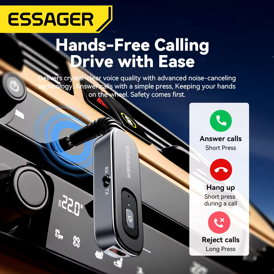 Essager Bluetooth 5.1 Audio Receiver Transmitter 3.5MM 3.5 AUX With Mic Stereo Music Wireless Adapter For PC TV Car Speakers