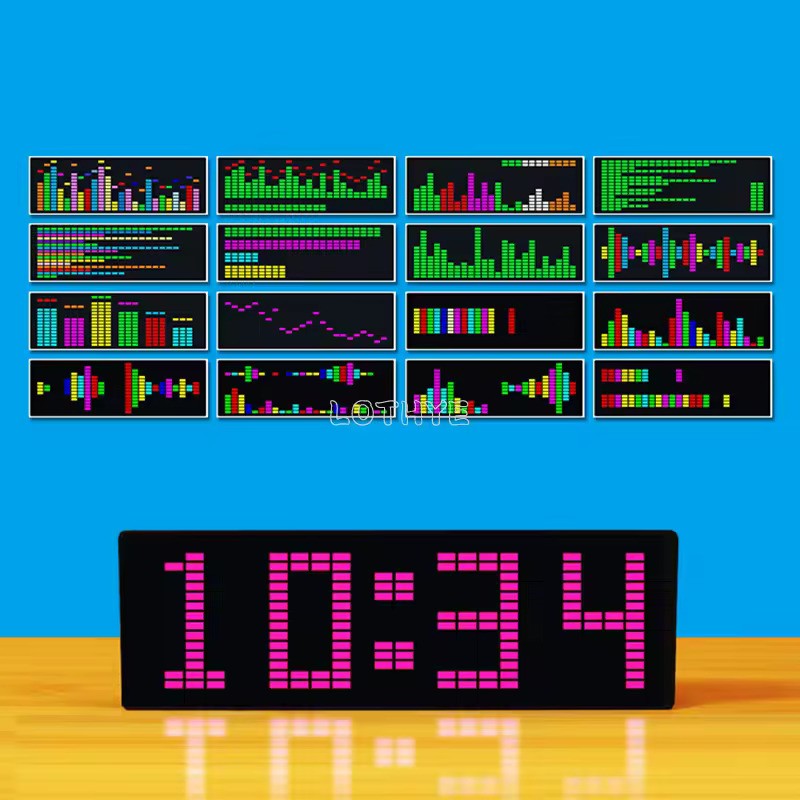 LED Light Music Spectrum Display Voice Control RGB Colorful Spectrum Pickup Atmosphere Lamp Electronic Clock Level Indicator USB